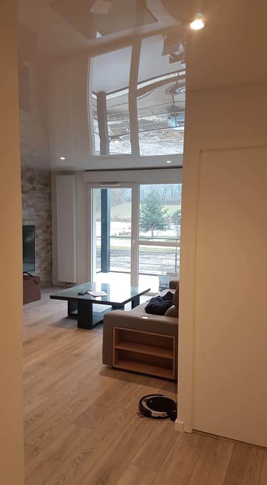 Belle réalisation à Saint-Jean d'Aulps (74) toile blanc mat spots encastrés. Client super content.